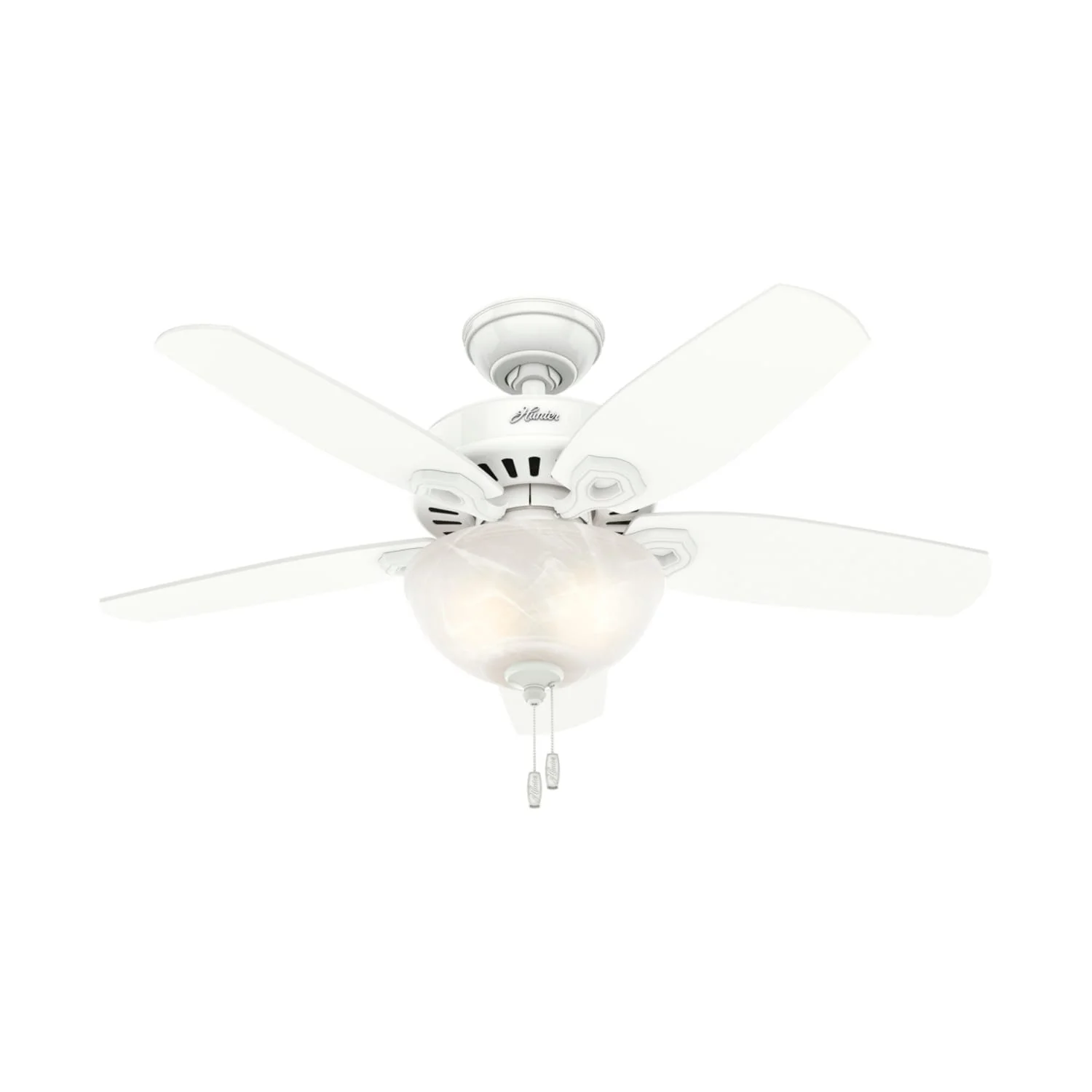 With a 42-inch blade span, the casual, traditional style of the Builder fan will complement the small rooms in your home without overpowering them. A mainstay in the Hunter® product line, these small ceiling fans with lights feature three-speed WhisperWind® motor technology to deliver quiet and ultra-powerful performance. Available in a variety of finish options, the energy-efficient LED bulbs shine through the glass bowl to enhance the ambiance of your room.